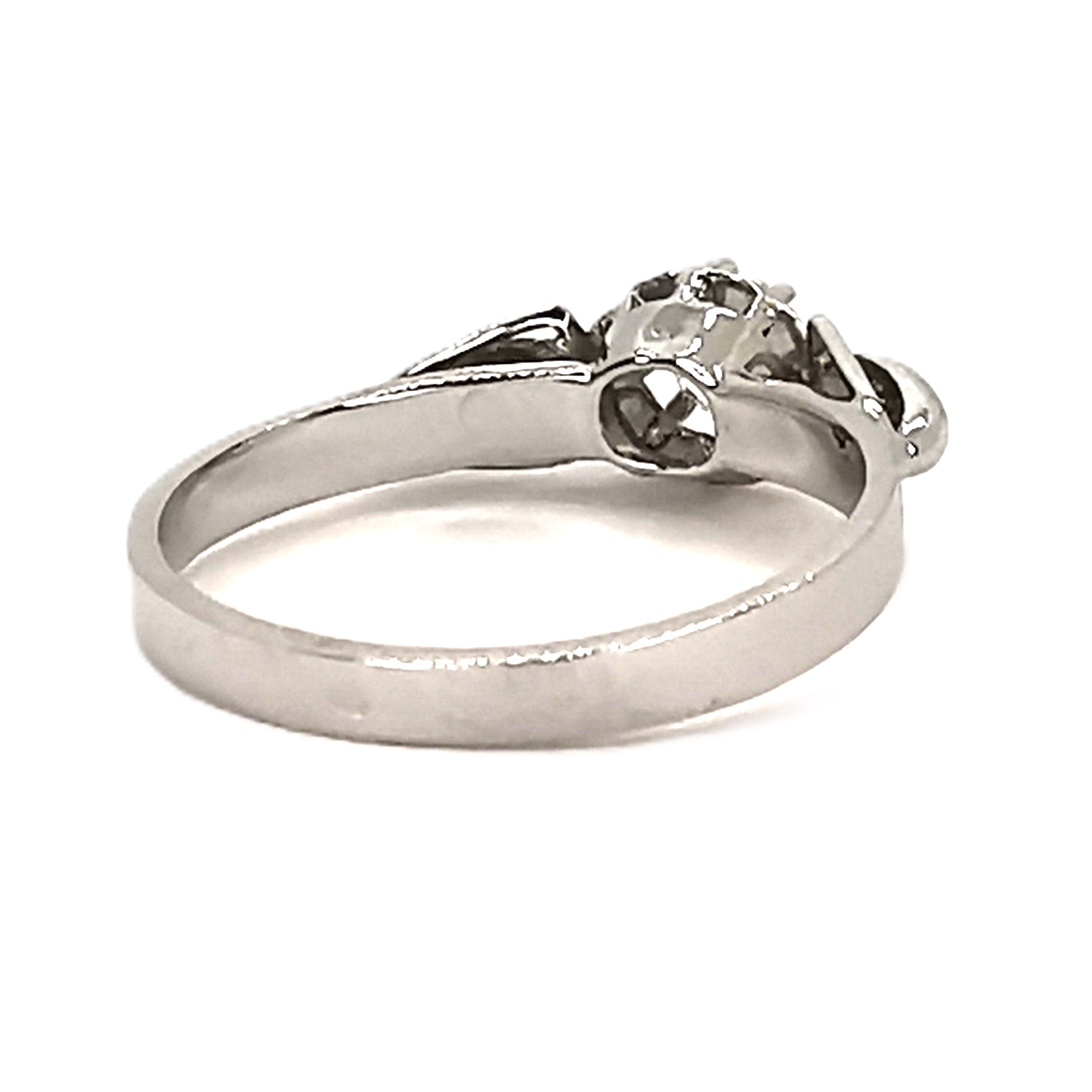 Cette bague vintage en or blanc 18 carats est serti de diamants.